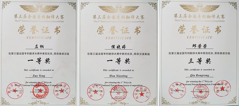 2021年4月7日,第三届全国专利翻译大赛组委会发布获奖名单,博彩平台网址大全